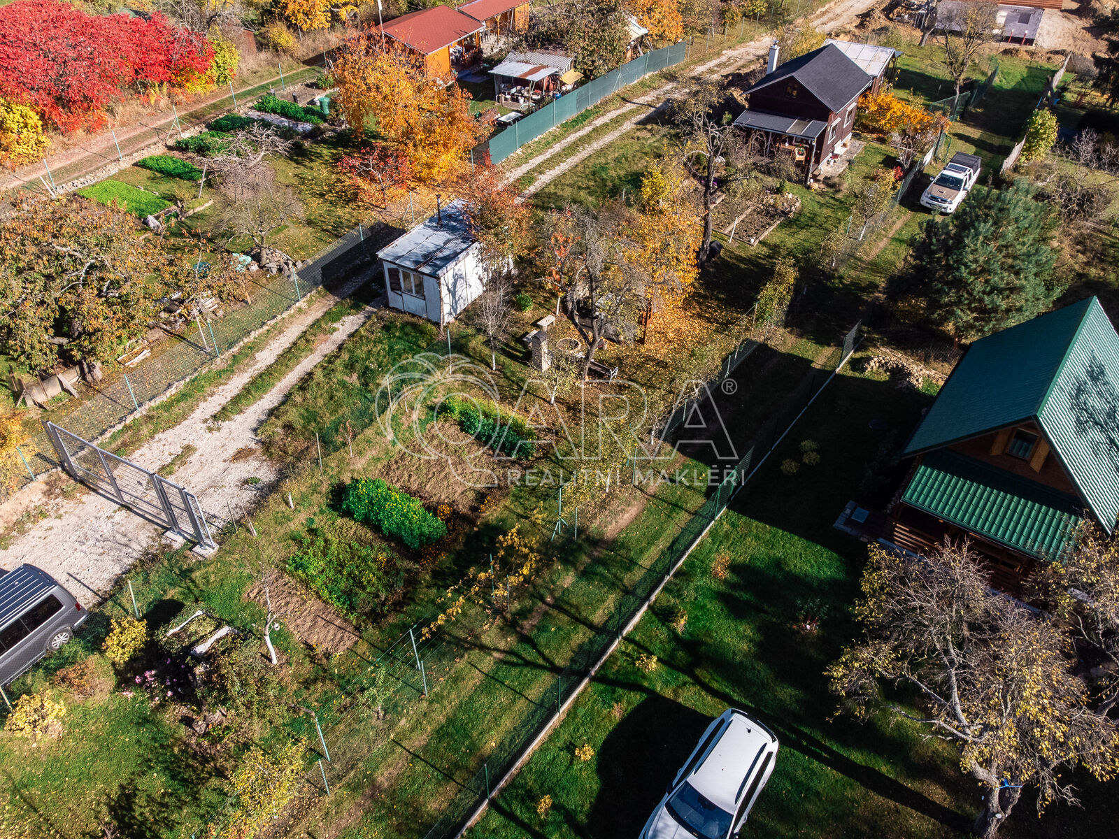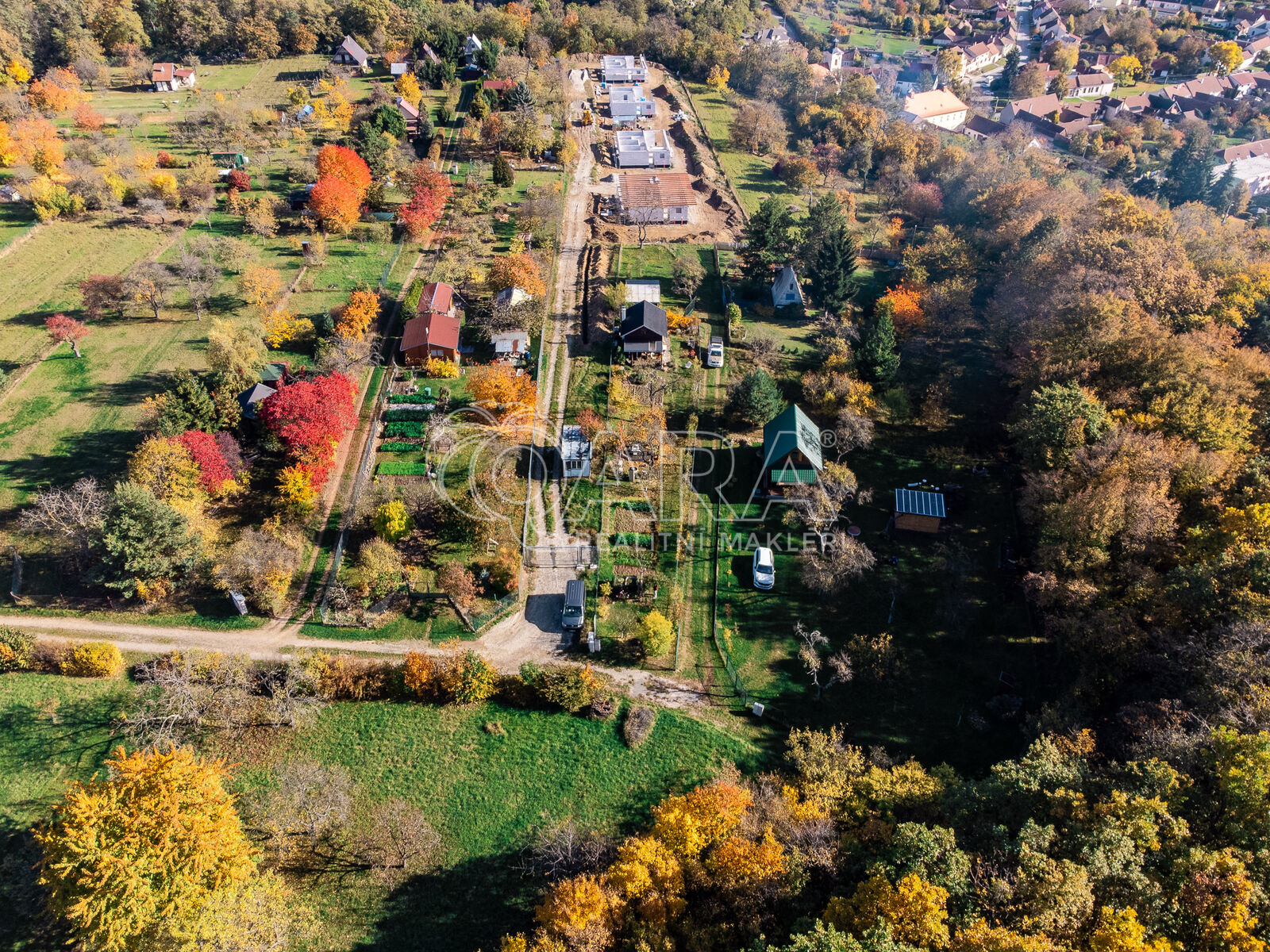 Pozemek o velikosti 498 m² je rovinatý, oplocený a obklopený zelení.